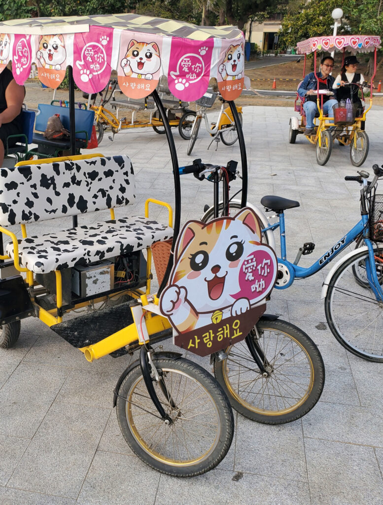 It’s popular to rent a bike and cycle around the island, and immediately upon disembarking we were greeted by a number of vendors offering all manner of bicycles to rent. In fact, the entire main road to the ferry terminal is lined with vendors, restaurants and food stalls all vying for business from visitors disembarking the ferry. It felt similar to the night markets I had visited the previous nights. As we walked along, I even spied more claw machines – at least two rooms of them! I guess the claw machine craze had spread to the island as well. We took a walk up to the end of the main drag and back to the ferry terminal to check out the stalls and bought some boiled quale eggs on a stick – they were pretty good!